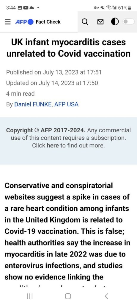 In 9 months span between middle of 2022 to ealy 2023 10 babies were born in one hospital in the UK. (From vaxxxed parents) in the previous 6 years before covid vaccination…. only 1 baby was born with myocarditis as a birth defect. 1 baby in 6 years pre covid vaccines. 10 babies on 9 months postv covid vaccine. But dont worry “fact checkers” are there to assure you “it wasnt the vaccine”
