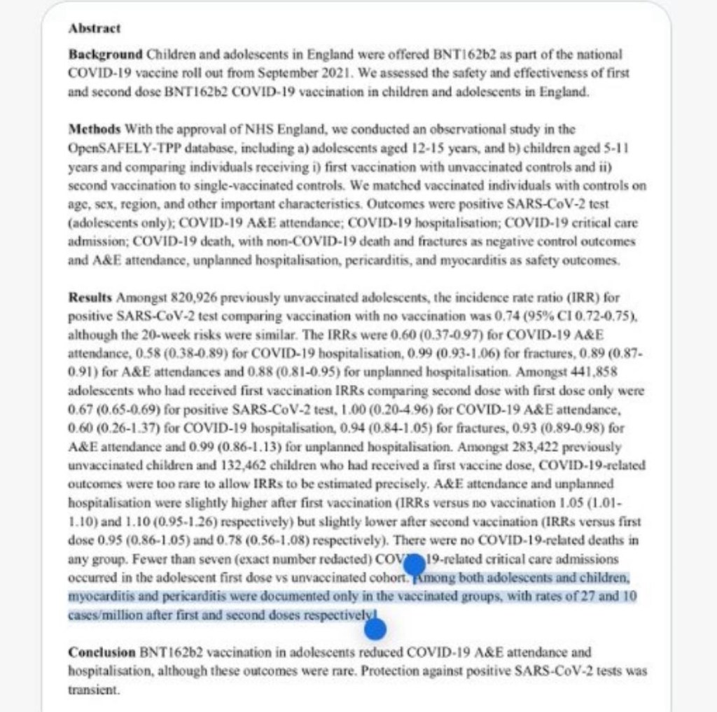 Not a single unvaccinated child in the group suffered from these heart-related problems.